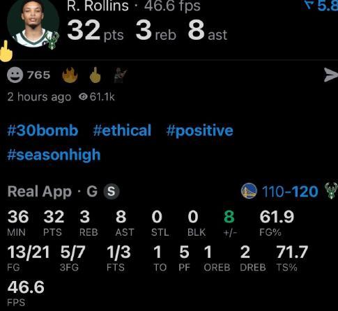 10月31日,雄鹿120比110击败勇士,本场比赛,雄鹿球员罗林斯表现出色,全场21投13中,贡献32分3篮板8助攻,带领球队击败强敌!